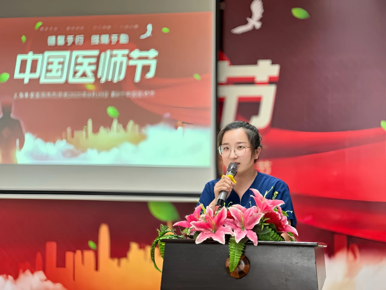 活动伊始,企划部精心制作的主题视频缓缓播放。镜头里,是医师们在诊室耐心问诊的专注、手术台上全神贯注的坚守、拍摄查看影像时的专注......每位医生的背后都有他们追逐的梦…… 每一帧画面都在诠释“医心向党守初心、砥砺奋进护健康”的深意,也让在场所有人重温着这份职业的重量。